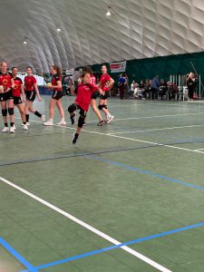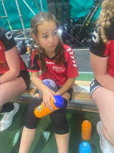 Loïs vertelt: “Ik vond het in het begin wel spannend om pupil van de week te zijn bij de dames, maar daarna vond ik het super leuk. Ik mocht als eerste meedoen met de warming-up, dat vind ik altijd leuk om te doen. Maar vooral omdat ik samen met Ninthe mocht kiezen wat we gingen doen qua oefeningen. Vervolgens de keepsters warmgooien, waar ik steeds ergens anders mocht gooien. Leuk om te zien, hoe de keepsters elkaar helpen; 1 keepster hield de ballen tegen en de andere keepster daarachter hield de ballen bij haar weg. Ik mocht tussen de dames staan, terwijl ze de tegenstander, scheidsrechter en publiek begroetten. Als ik zelf handbal in mijn eigen team, dan sta ik het liefste op de opbouwpositie… links of rechts. Ik ben dan vooral goed in een sprongschot op het doel. Ik vond het dan ook heel leuk dat ik aan het begin van de wedstrijd mocht scoren bij de tegenstander. De dames speelden vandaag ook echt goed samen en de keepsters stonden goed te keepen. Het was een leuke wedstrijd om naar te kijken. Ik vond dat de dames goed gespeeld hebben; blijf dit zo doen dit seizoen!”.
