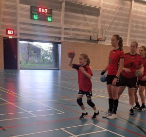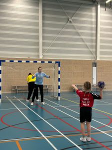 Nora vertelt: “Ik handbal zelf in de E3, waar ik graag in de aanval sta. Ik vind het namelijk heel leuk om te scoren. Ik vind dit zelf prettig vanaf de midden positie; vandaag heb ik in mijn eigen team 6 goals gemaakt. Bij de dames moest ik vandaag ook aan de bak, want de warming-up was wel vermoeiend… ik was daarna wel warm! De keepster ingooien vond ik wel lastig, want dat doen wij zelf in ons team nog niet. De wedstrijd heb ik verder vanaf de bank tussen de dames meegekeken. Deze was spannend, want het ging heel gelijk op. Ik vond dat Natalie vandaag goed verdedigde en ik hoop dat de dames de volgende keer wel winnen. Ondanks dat ik het spannend vond om de pupil van de week te zijn, heb ik wel ontzettend genoten van het kijken naar de wedstrijd. En ik vond het heel leuk om het doel te schieten.”