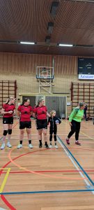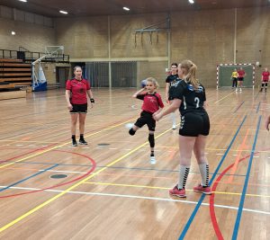 Sanne vertelt: “Ik vond het helemaal niet spannend, ik had er juist al een paar weken zin in! Ik ben door dames opgevangen in de kleedkamer, waar ik een shirtje van hun kreeg. Daarna samen richting de zaal, wel mijn jasje aangehouden tijdens de warming-up want het was heel erg koud in de zaal! We moesten daarna veel rennen en allerlei loopoefeningen doen, wat leuk en niet te moeilijk was. Wij doen dit zelf ook bij onzen trainingen bij de Fjeugd. Ik vind het zelf leuk om te keepen, dat gaat me ook goed af. Al ben ik ook goed in een sprongschot en dan schieten op het doel. Dat vond ik vandaag dan ook het leukste om te doen tijdens de warming-up; gooien op op het doel en scoren. Ik vond het een mooie wedstrijd en er werd hard gelopen en snel overgespeeld. Wel vond ik dat er hard aangepakt en veel geduwd, dat is nog niet bij onze wedstrijden. Er werd hard gewerkt in het veld en goed samengespeeld. Ik vond iedereen goed, vooral omdat ze zo goed samenspelen. Blijf doelpunten maken dames en winnen!”.